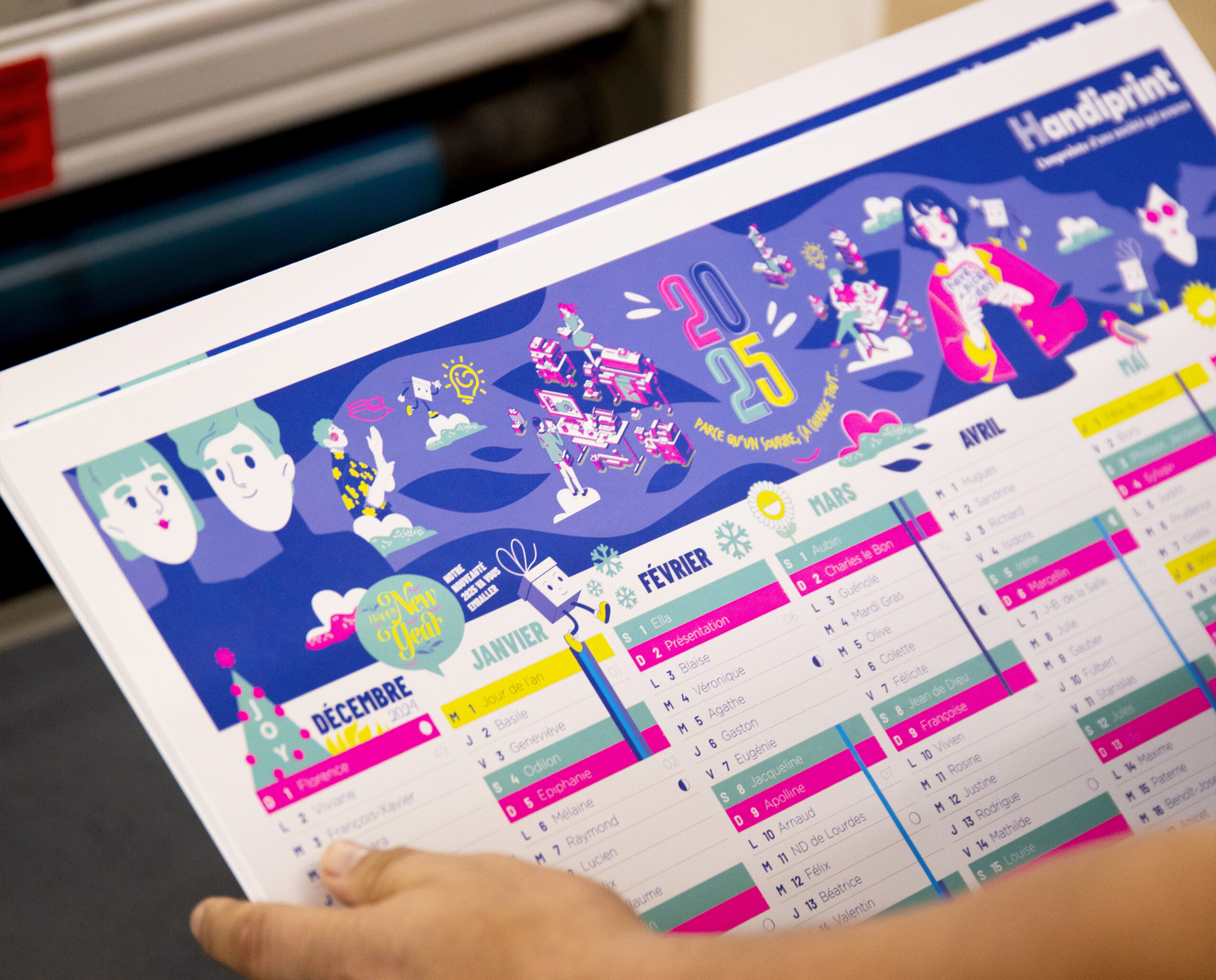 Handi print est une entreprise adaptée créée à Cherbourg-en-Cotentin en 2010. Nos 249 collaborateurs – dont 156 en situation de handicap – sont formés à plus de multiples métiers : la création graphique, l’impression offset, numérique et 3D, le façonnage, la signalétique, la réalisation de calendriers, d’étiquettes adhésives en bobines, de packaging, le print management, le routage, le stockage et la logistique, le reconditionnement de téléphonie et les prestations sur sites industriels. Notre empreinte est de conjuguer la performance économique avec l’inclusion des personnes en situation de handicap. C’est notre ADN et notre fierté : mettre l’humain au cœur de tout ce que nous entreprenons.